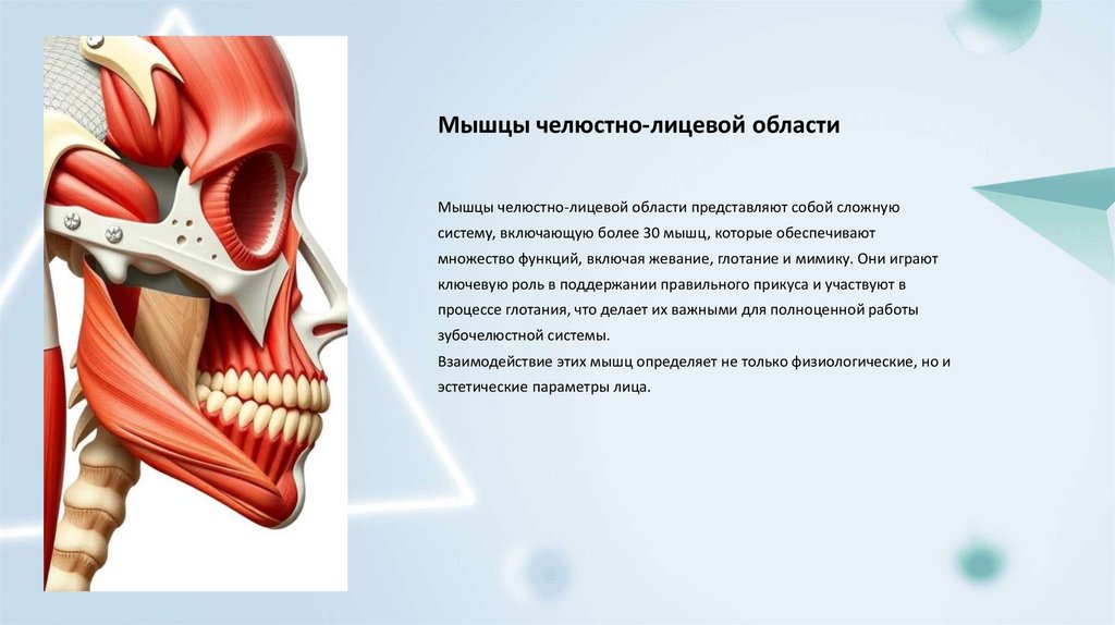 Мышцы челюстно-лицевой областиМышцы челюстно-лицевой области представляют собой сложную