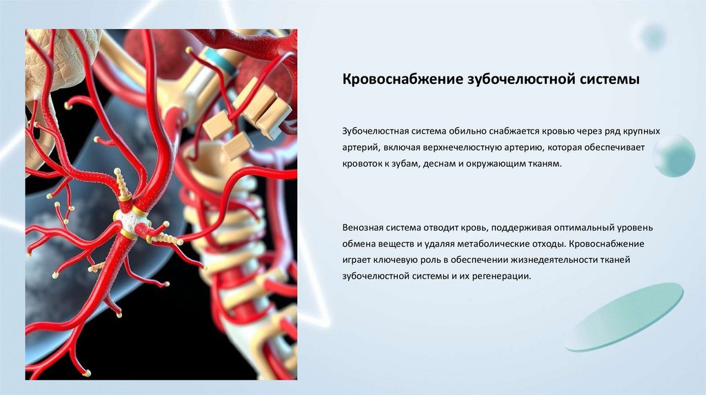 Кровоснабжение зубочелюстной системыЗубочелюстная система обильно снабжается кровью через ряд крупных