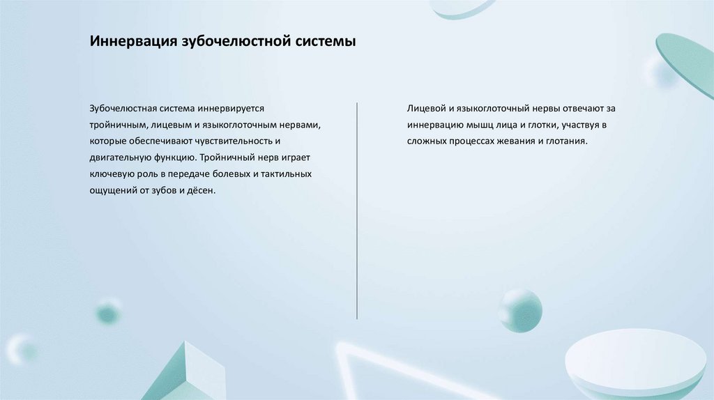Иннервация зубочелюстной системыЗубочелюстная система иннервируется
