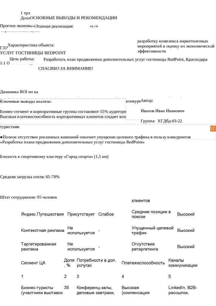Разработать план продвижения дополнительных услуг гостиницы RedPoint, Краснодара