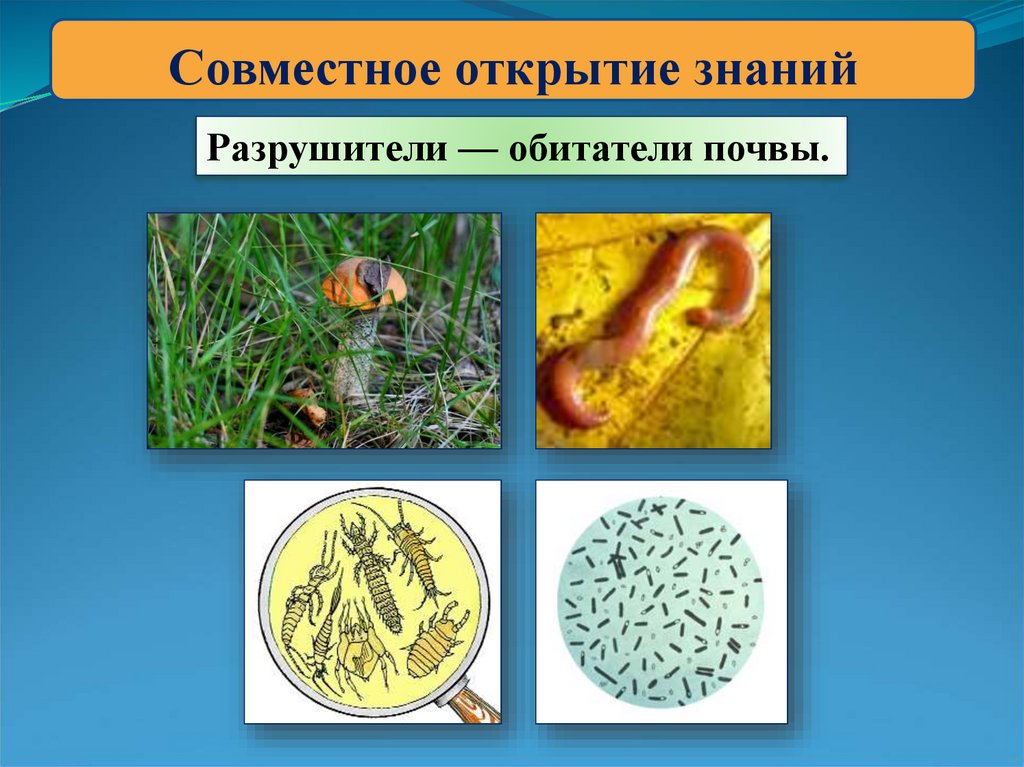 Совместное открытие знанийРазрушители — обитатели почвы.