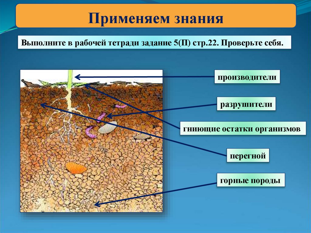 Применяем знанияВыполните в рабочей тетради задание 5(П) стр.22. Проверьте себя.