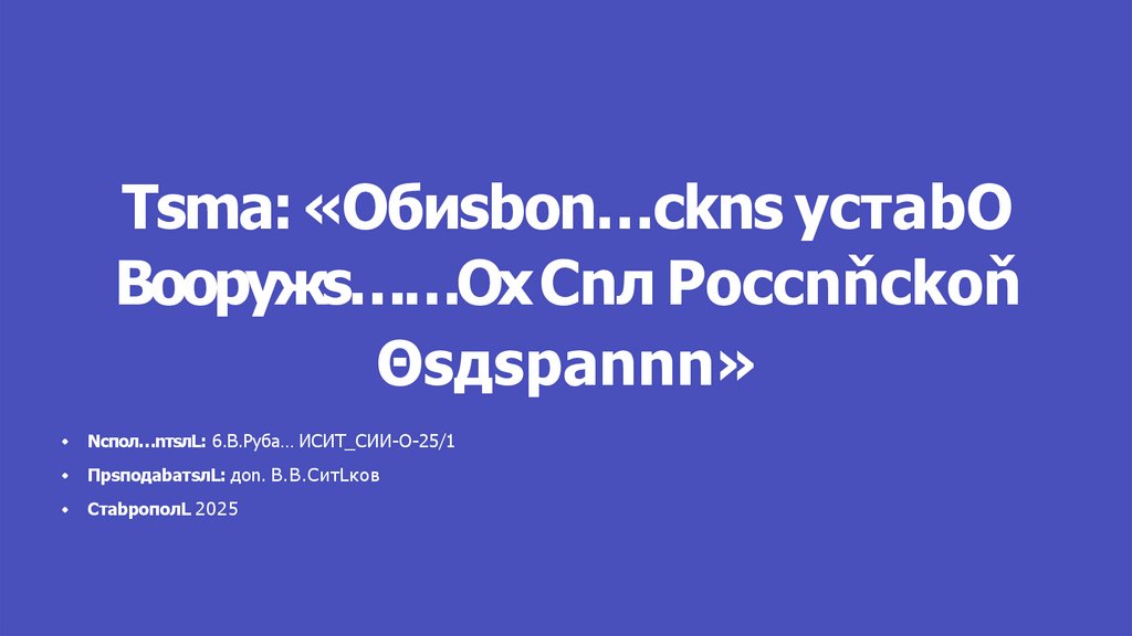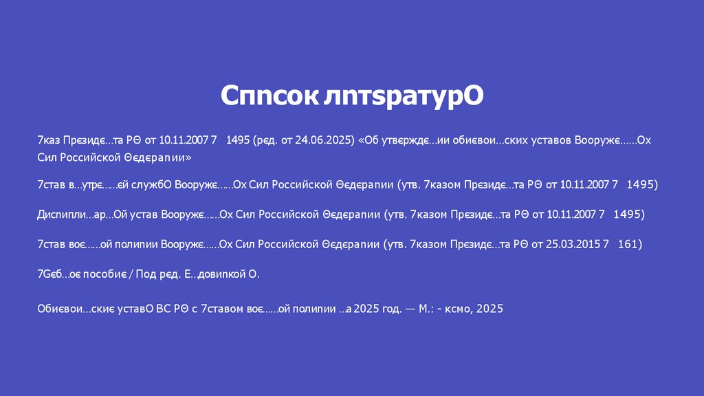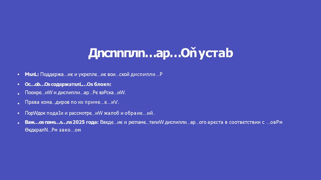 Дисnипли…ар…Oй устав Вооружє……Oх Сил Pоссийской Θєдєраnии (утв. 7казом Прєзидє…та PΘ от 10.11.2007 7 1495)