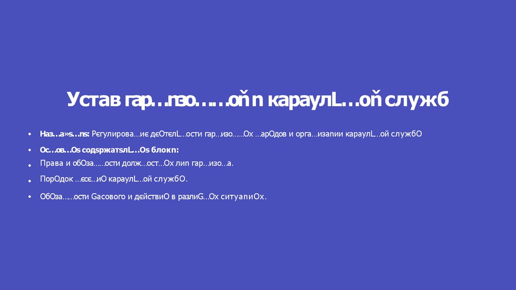 Hаз…а»ѕ…nѕ: Рєгулирова…иє дєOтєлL…ости гар…изо……Oх …арOдов и орга…изаnии караулL…ой службO