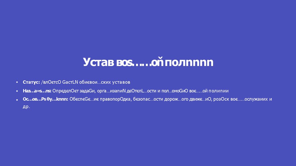 Oс…oв…Ps θy…knnn: ОбєспєGє…иє правопорOдка, бєзопас…ости дорож…ого движє…иO, розOск воє……ослужаиих и