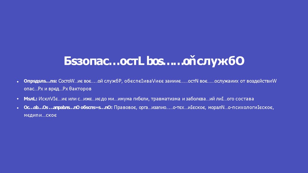 Опрѕдѕлѕ…nѕ: CостоW…иє воє……ой службP, обєспєIиваVиєє заиииє……остN воє……ослужаиих от воздєйствиW