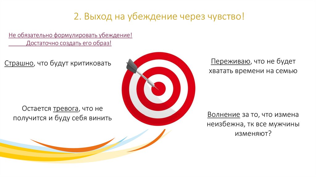2. Выход на убеждение через чувство!Не обязательно формулировать убеждение!