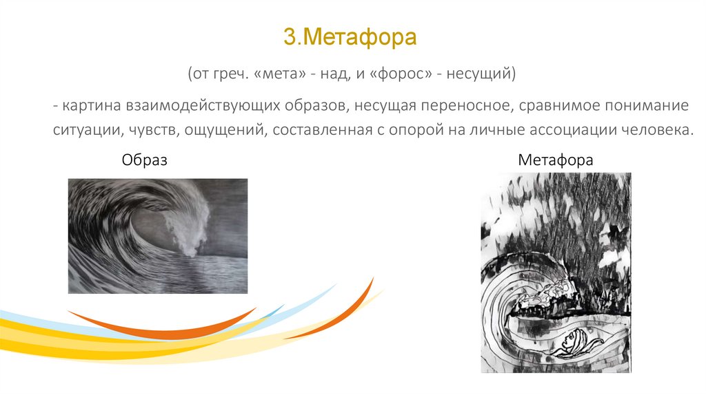 3.Метафора(от греч. «мета» - над, и «форос» - несущий)