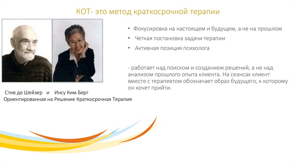 КОТ- это метод краткосрочной терапии• Фокусировка на настоящем и будущем, а не на прошлом