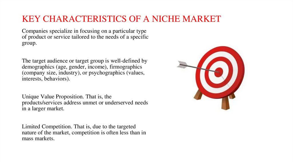 KEY CHARACTERISTICS OF A NICHE MARKETCompanies specialize in focusing on a particular type