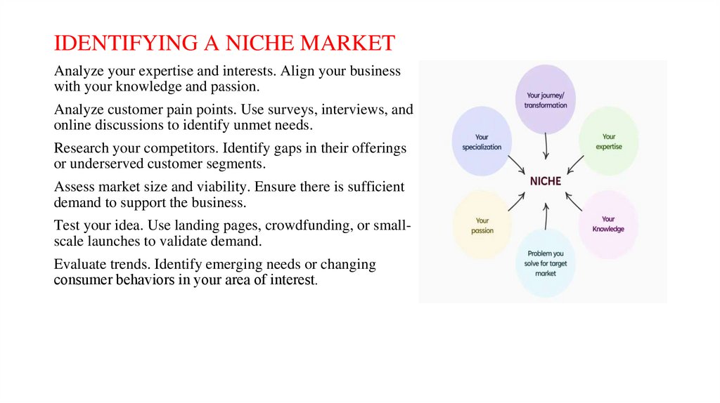 IDENTIFYING A NICHE MARKETAnalyze your expertise and interests. Align your business