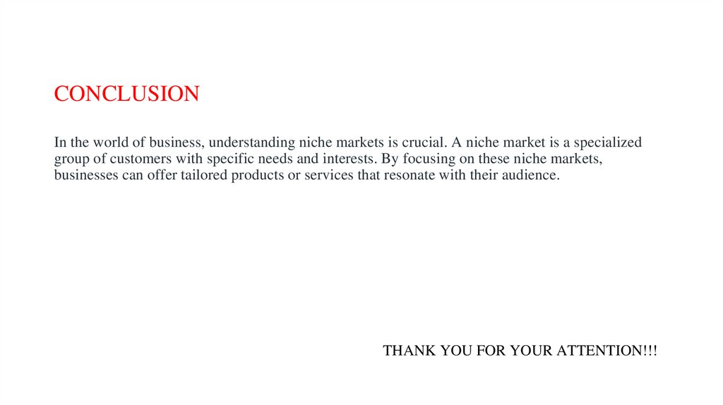 CONCLUSIONIn the world of business, understanding niche markets is crucial. A niche market is a specialized