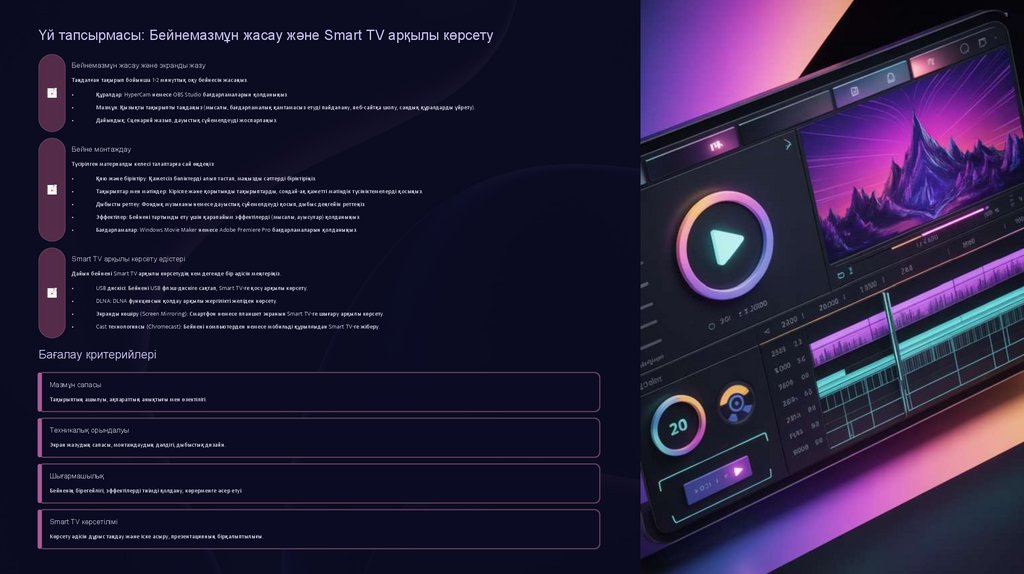 Үй тапсырмасы: Бейнемазмұн жасау және Smart TV арқылы көрсетуБейнемазмұн жасау және экранды жазу