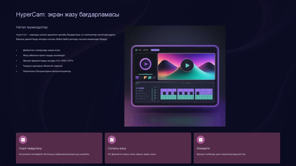 HyperCam – экранды жазуға арналған арнайы бағдарлама, ол компьютер мониторындағы