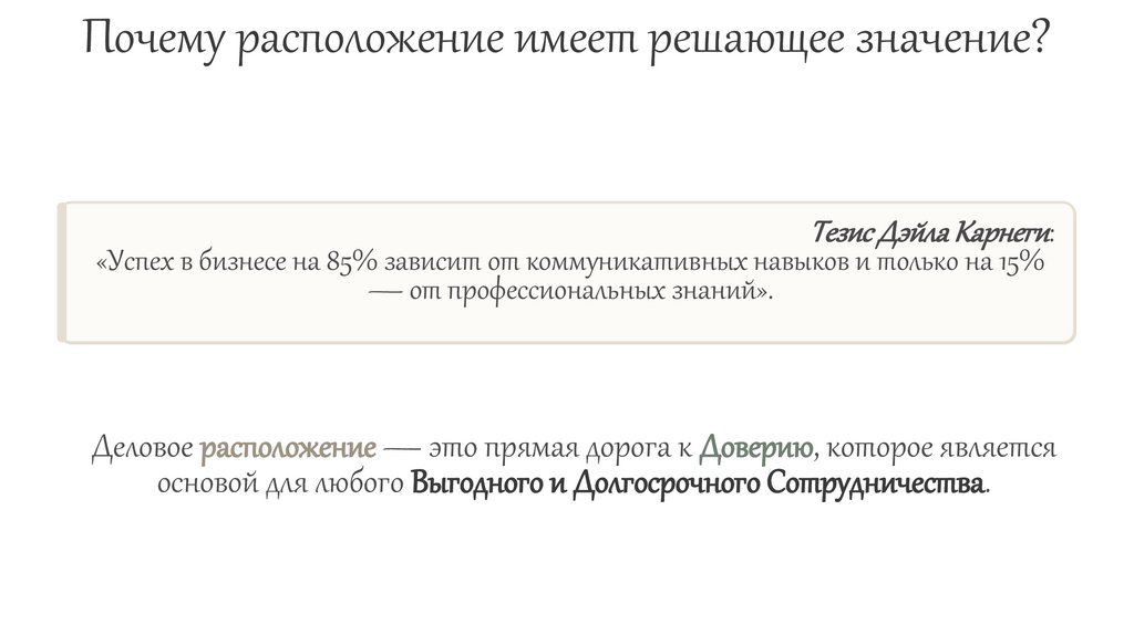Почему расположение имеет решающее значение?Тезис Дэйла Карнеги: