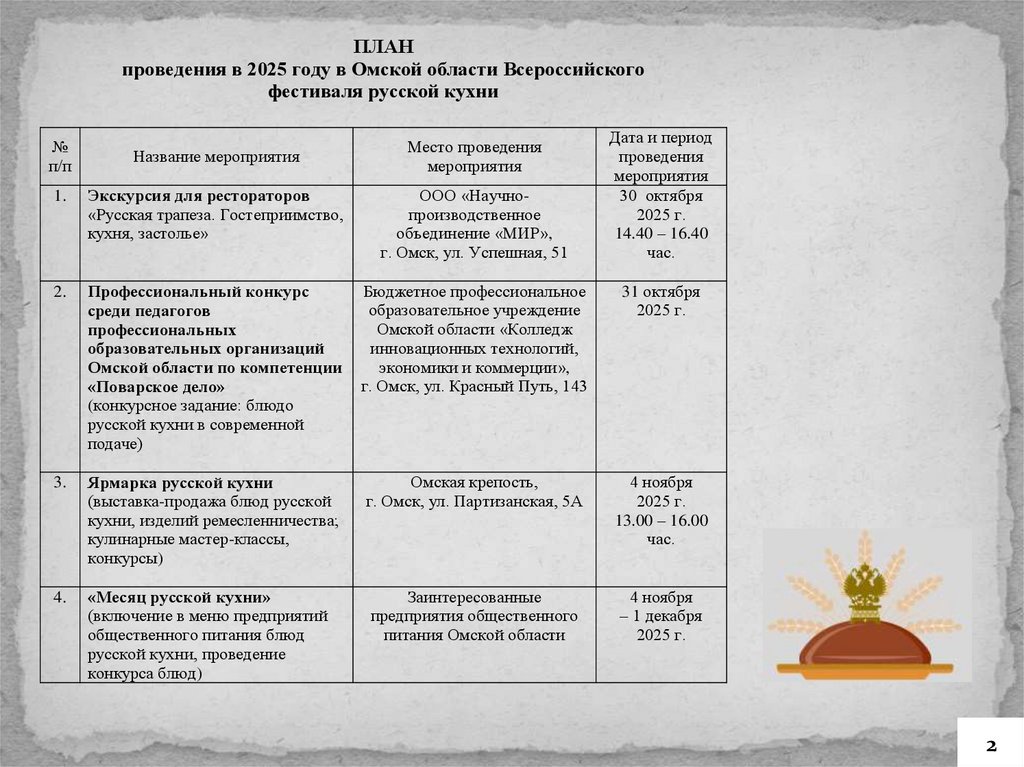 ПЛАНпроведения в 2025 году в Омской области Всероссийского
