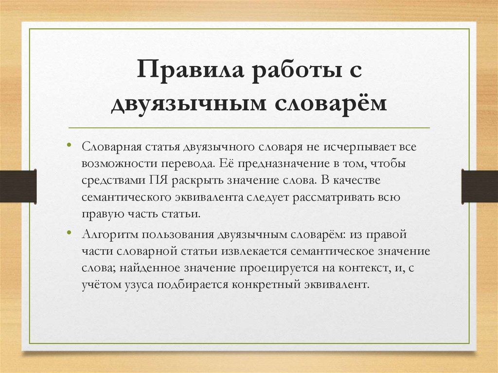 Правила работы сдвуязычным словарём