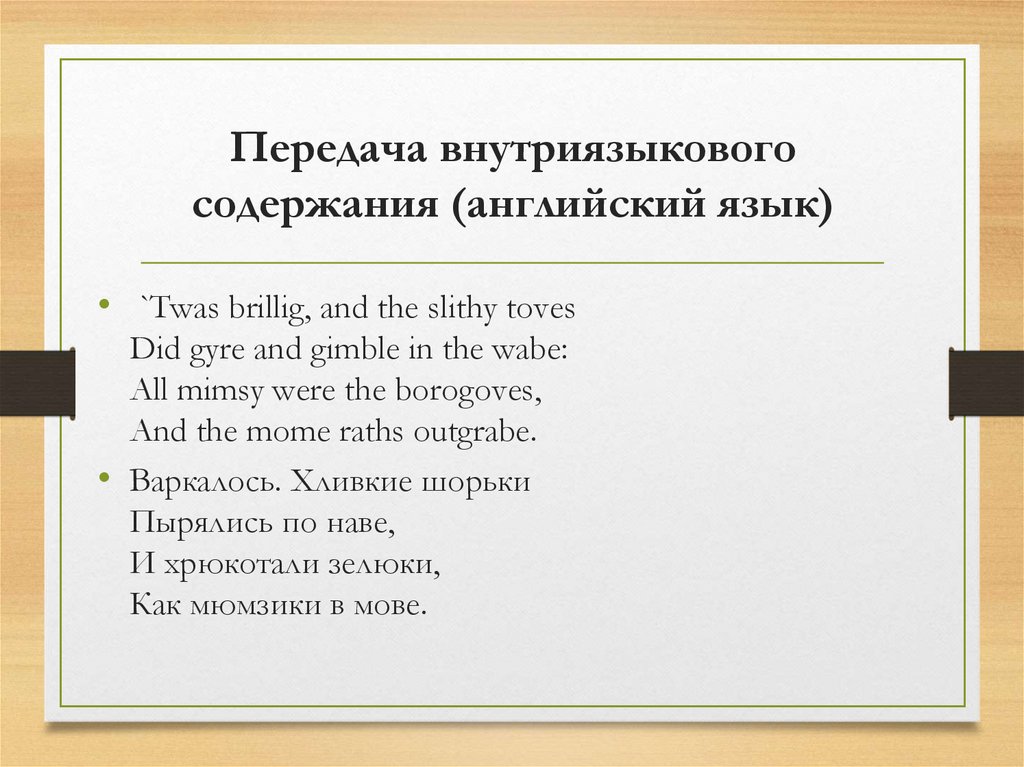 Передача внутриязыковогосодержания (английский язык)