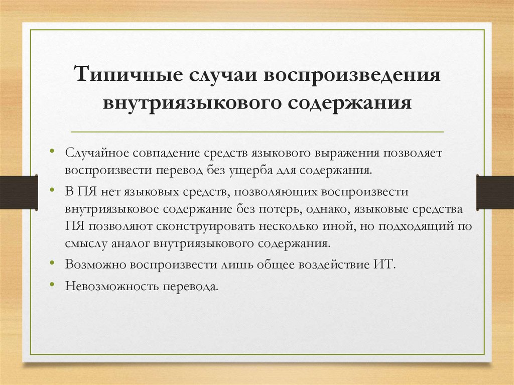 Типичные случаи воспроизведениявнутриязыкового содержания
