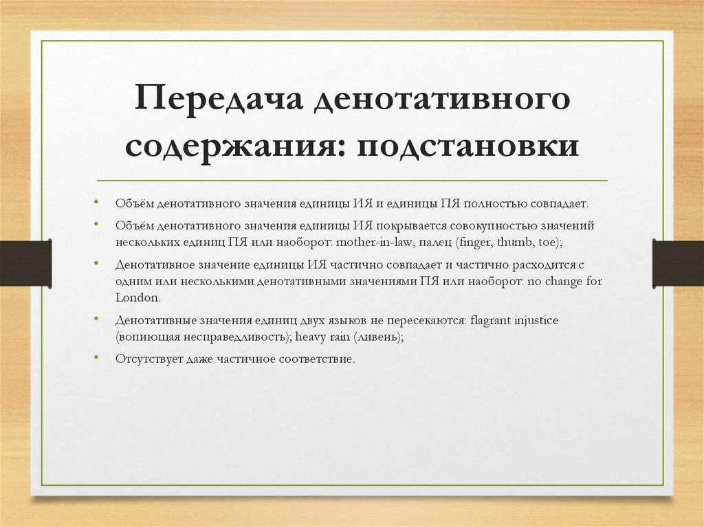 Передача денотативногосодержания: подстановки