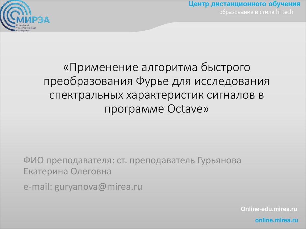 1. «Применение алгоритма быстрого преобразования Фурье для исследования спектральных характеристик сигналов в программе Octave»