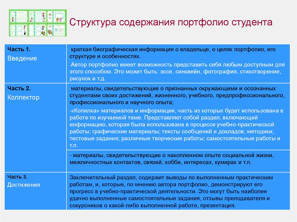Структура содержания портфолио студентаЧасть 1.