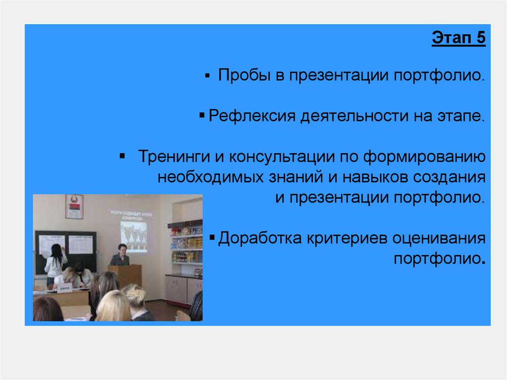 Этап 5Пробы в презентации портфолио.