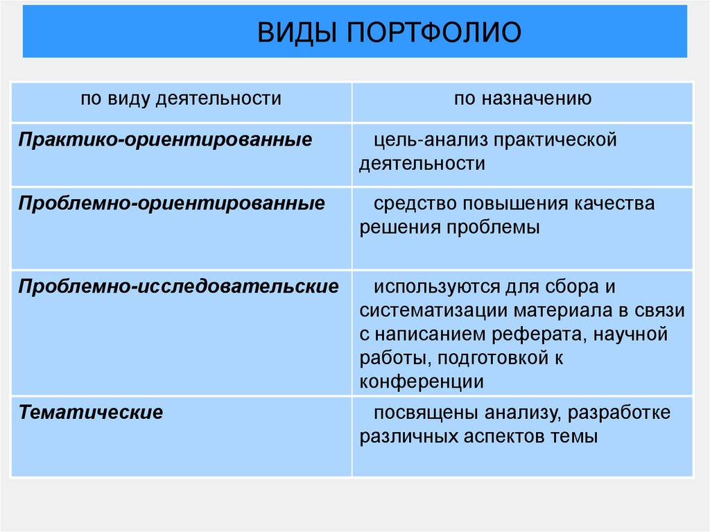 ВИДЫ ПОРТФОЛИОпо виду деятельности
