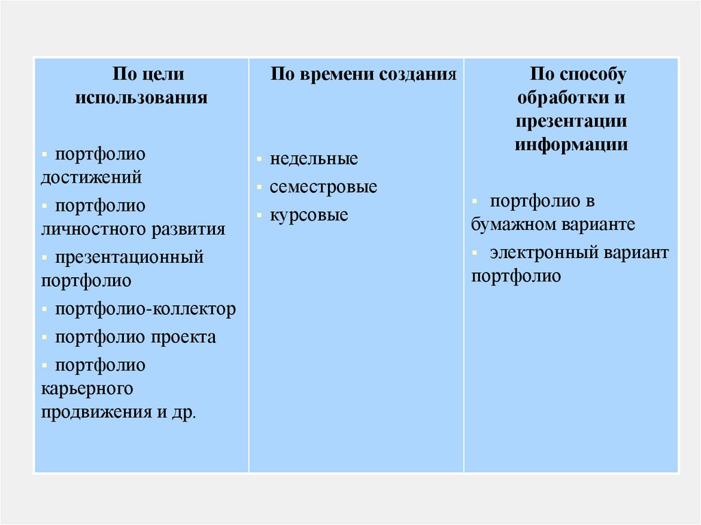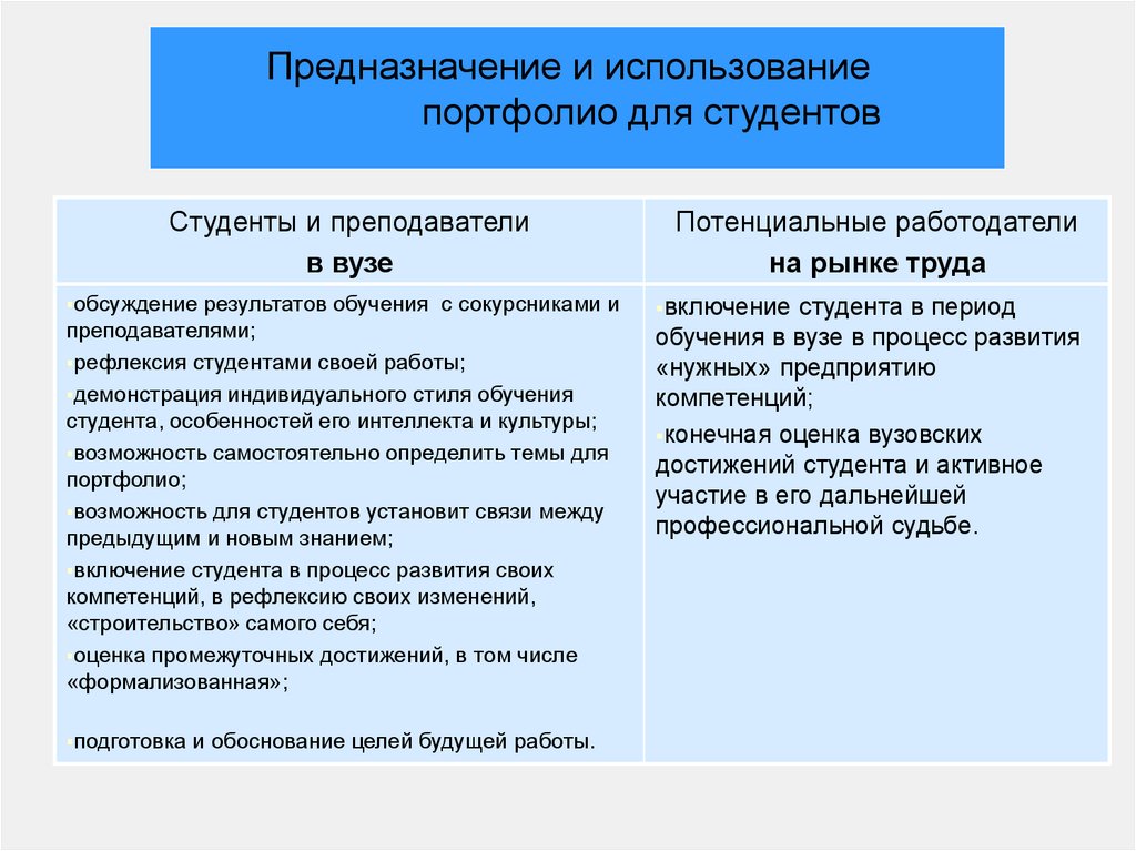 Предназначение и использованиепортфолио для студентов