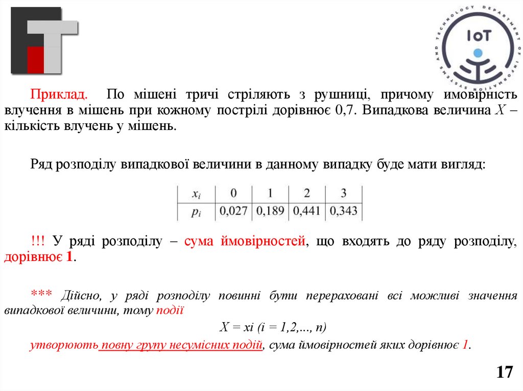 *** Символом рі позначено ймовірність того, що випадкова величина прийме