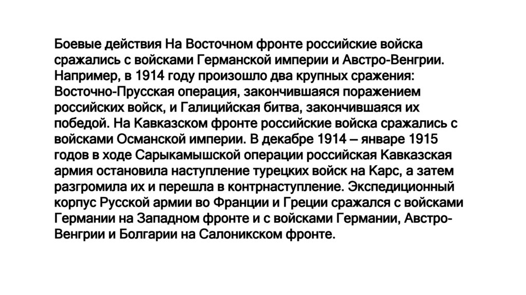 Боевые действия На Восточном фронте российские войскасражались с войсками Германской империи и Австро-Венгрии.