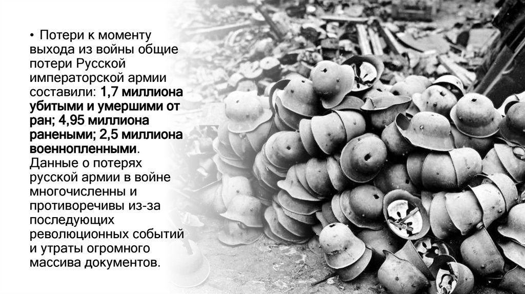 • Русская императорская армия участвовала в Первоймировой войне 1 августа 1914 года на стороне Антанты. К