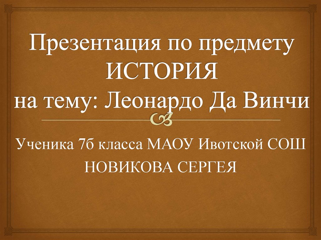 1. Презентация по предмету ИСТОРИЯ на тему: Леонардо Да Винчи