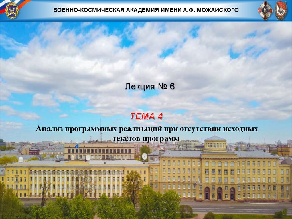 ВОЕННО-КОСМИЧЕСКАЯ АКАДЕМИЯ ИМЕНИ А.Ф. МОЖАЙСКОГОЛекция № 6