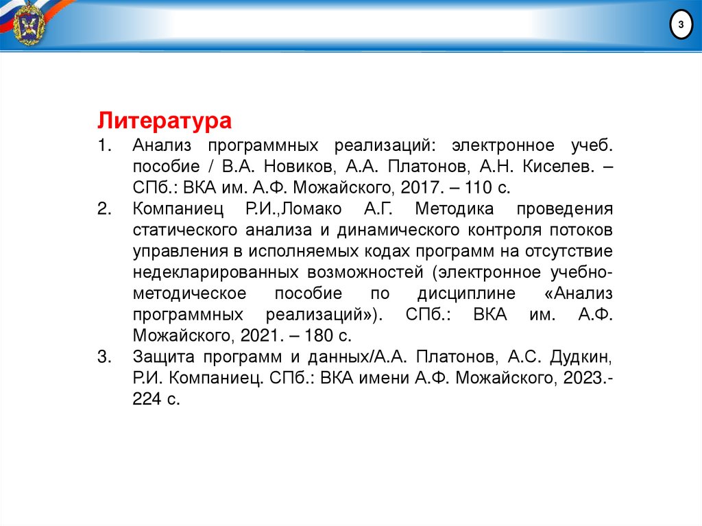 программных реализаций»). СПб.: ВКА им. А.Ф.