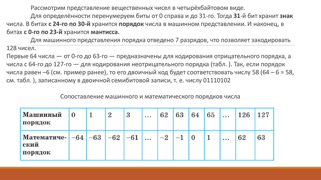 числа с 64-го до 127-го — для кодирования неотрицательного порядка (табл. ). Так, если порядок