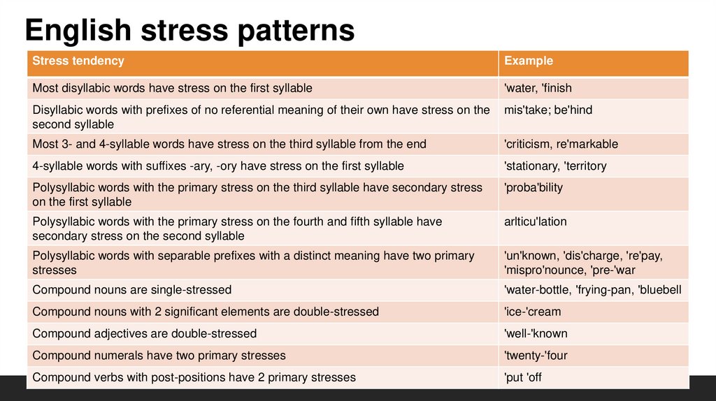 • Sentence stress is decentralized (terminal tone is on the last word)