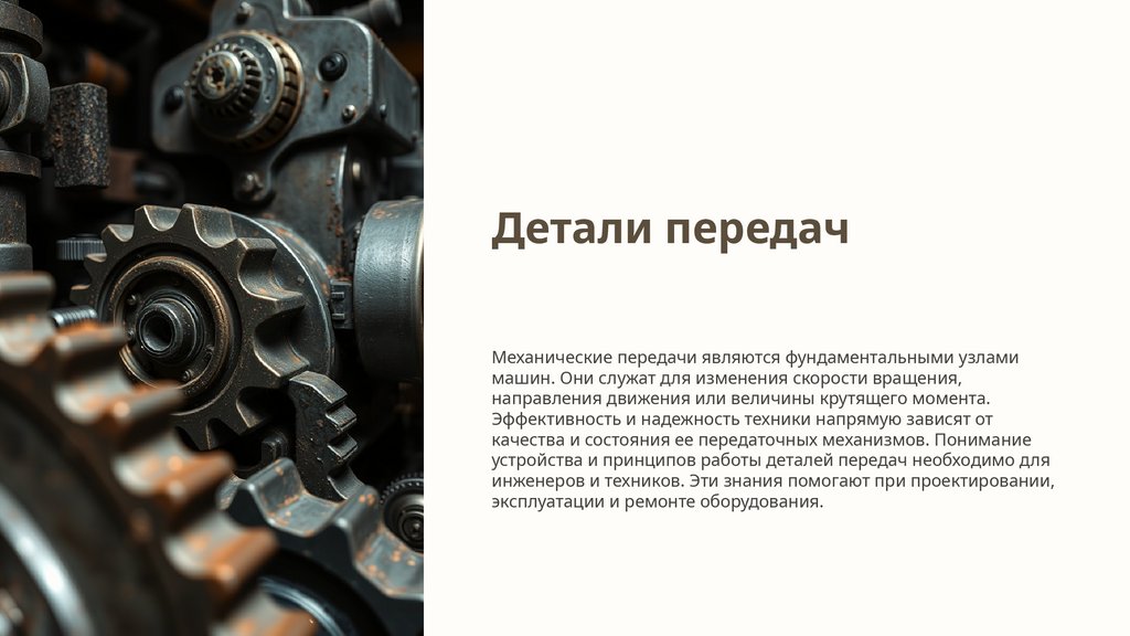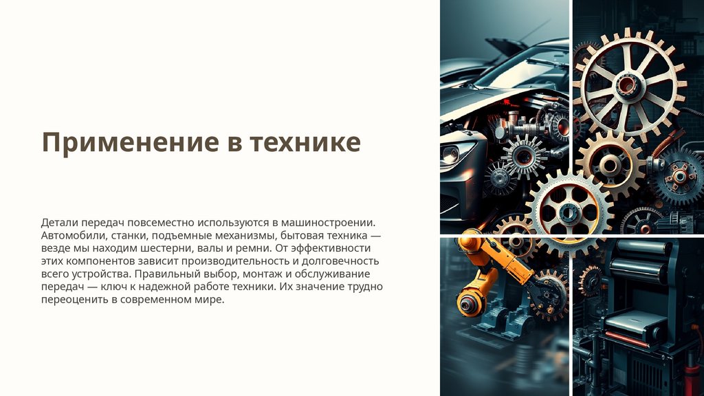 Применение в техникеДетали передач повсеместно используются в машиностроении.