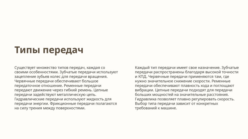 Каждый тип передачи имеет свое назначение. Зубчатые
