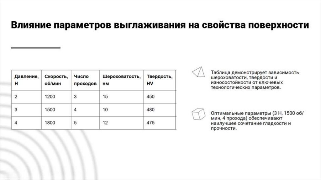 упорядочению зерен и улучшению физикомеханических свойств поверхности.