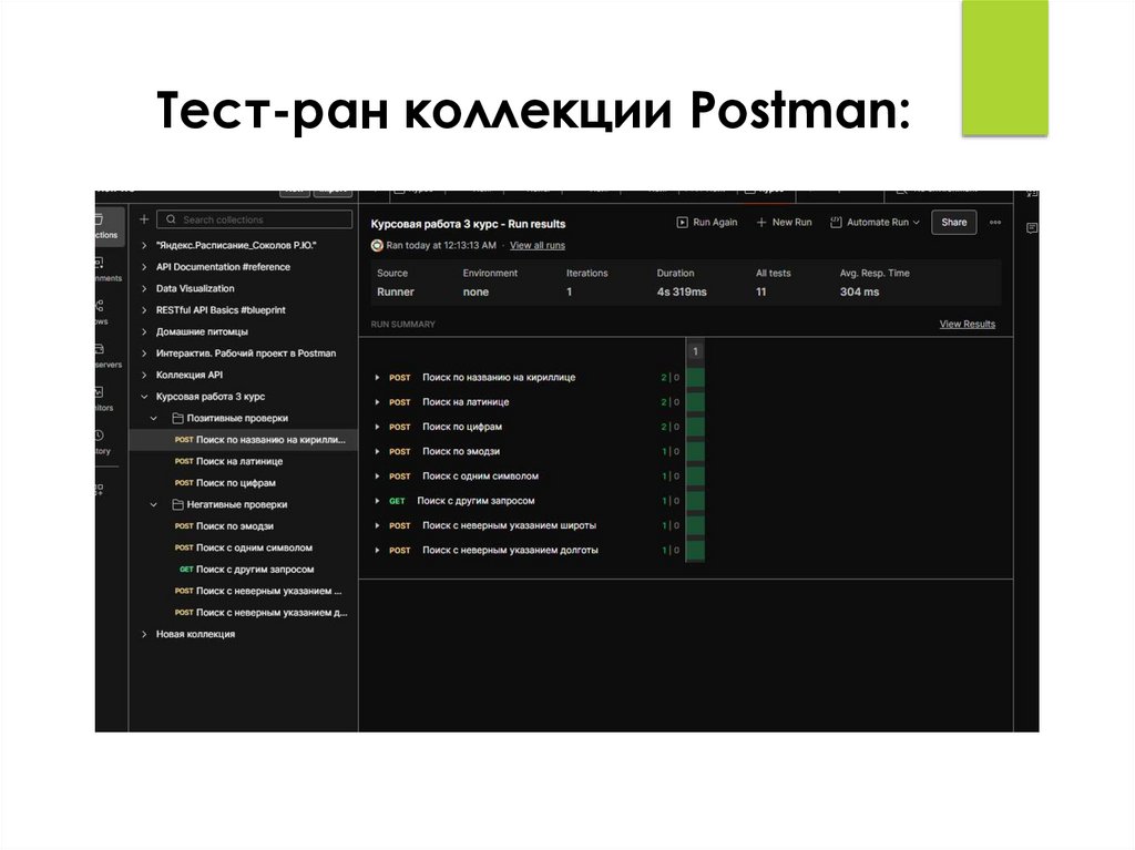 Тест-ран коллекции Postman:12. Баг-репорты: