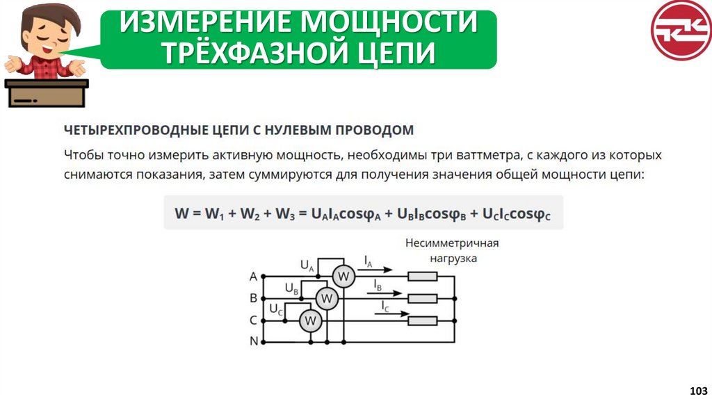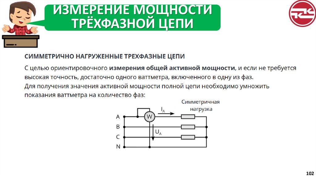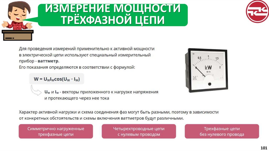 ИЗМЕРЕНИЕ МОЩНОСТИ ТРЁХФАЗНОЙ ЦЕПИ (слайд 101)