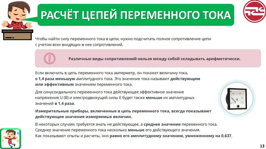 РАСЧЁТ ЦЕПЕЙ ПЕРЕМЕННОГО ТОКА (слайд 13)