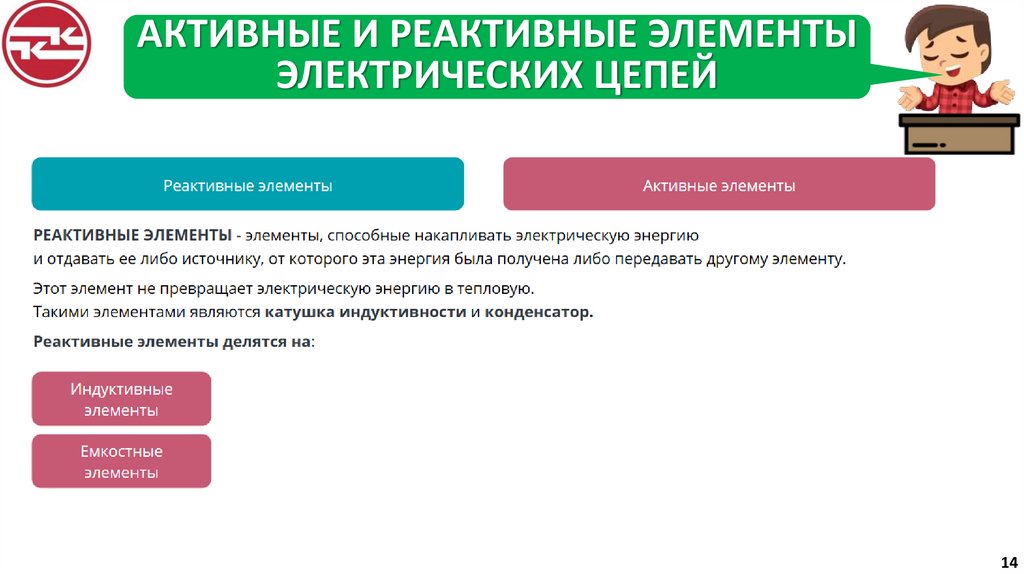АКТИВНЫЕ И РЕАКТИВНЫЕ ЭЛЕМЕНТЫ ЭЛЕКТРИЧЕСКИХ ЦЕПЕЙ (слайд 14)