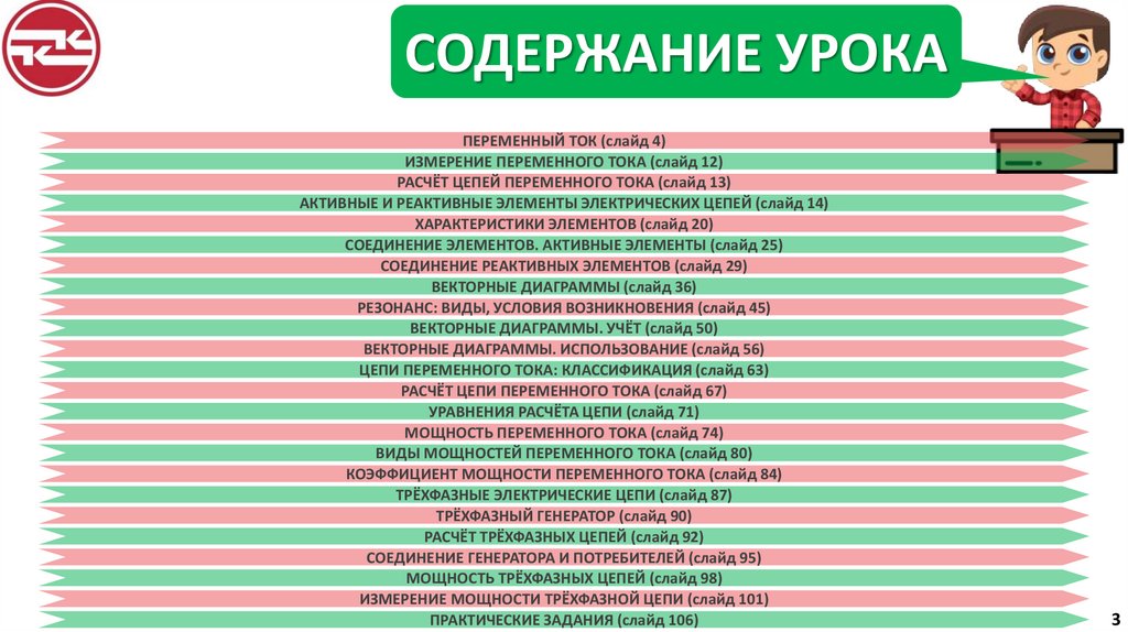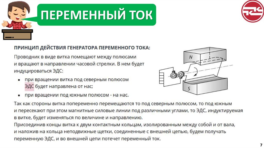 СОДЕРЖАНИЕ УРОКАПЕРЕМЕННЫЙ ТОК (слайд 4)