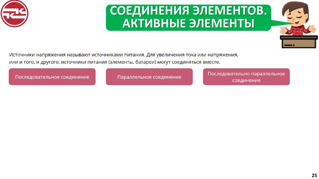 СОЕДИНЕНИЕ ЭЛЕМЕНТОВ. АКТИВНЫЕ ЭЛЕМЕНТЫ (слайд 25)