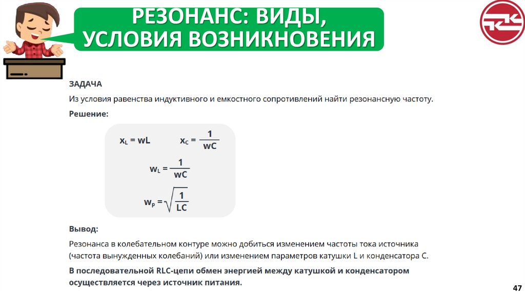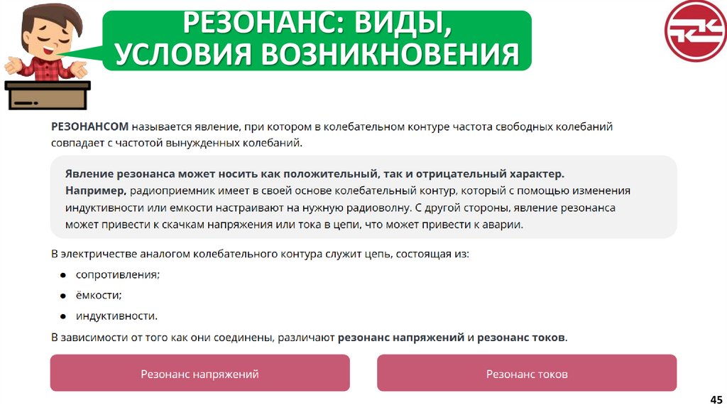 РЕЗОНАНС: ВИДЫ, УСЛОВИЯ ВОЗНИКНОВЕНИЯ (слайд 45)