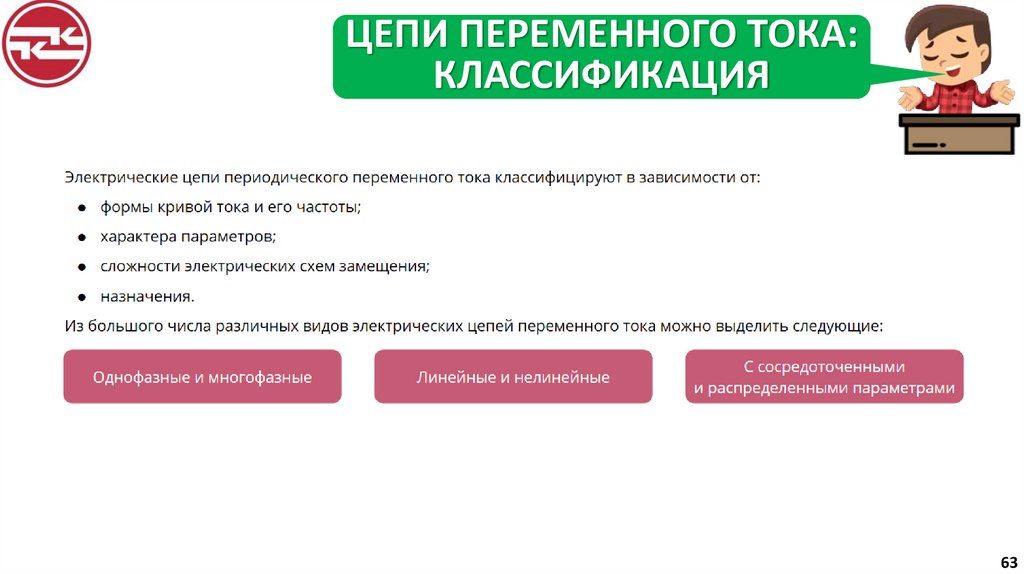 ЦЕПИ ПЕРЕМЕННОГО ТОКА: КЛАССИФИКАЦИЯ (слайд 63)