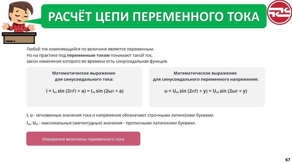 РАСЧЁТ ЦЕПИ ПЕРЕМЕННОГО ТОКА (слайд 67)