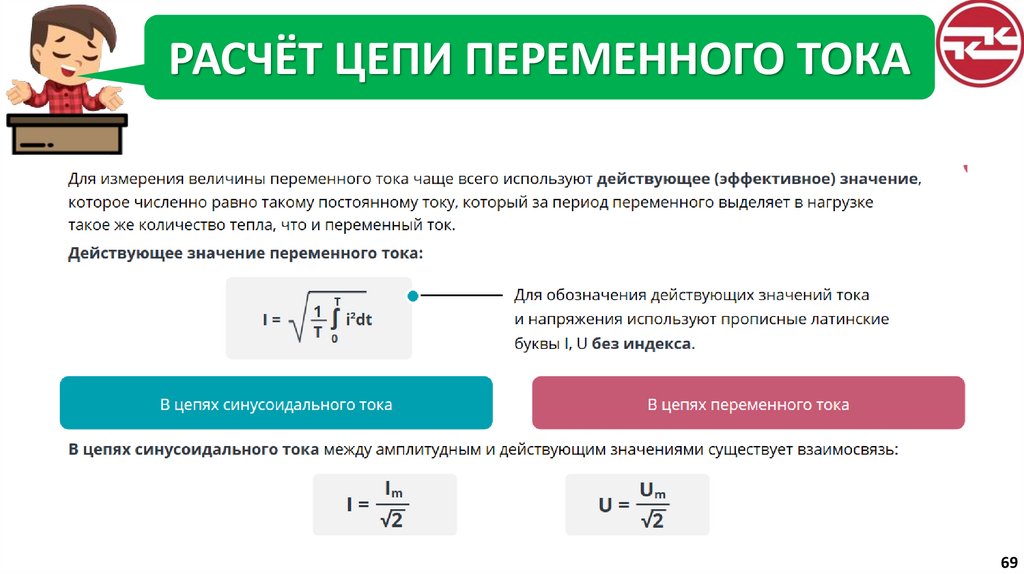 РАСЧЁТ ЦЕПИ ПЕРЕМЕННОГО ТОКА69
